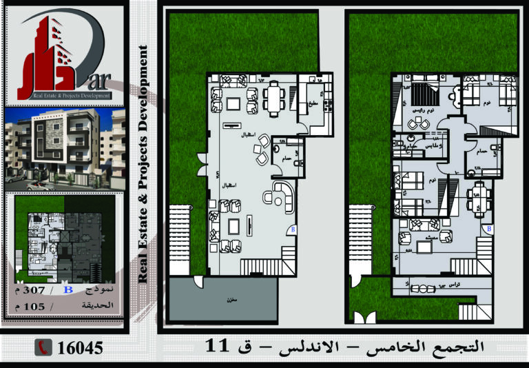 دوبلكس 307م بحديقة 105م قطعة 11 حي الاندلس في التجمع الخامس