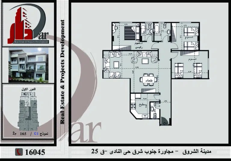 الدور الاول 165م قطعة 25 حى النادى في مدينة الشروق
